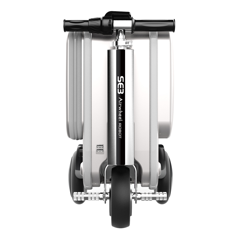 Airwheel SE3 este o valiza inteligenta cu motor electric si roti de transport, care prin apasarea unui buton devine vehicul electric.